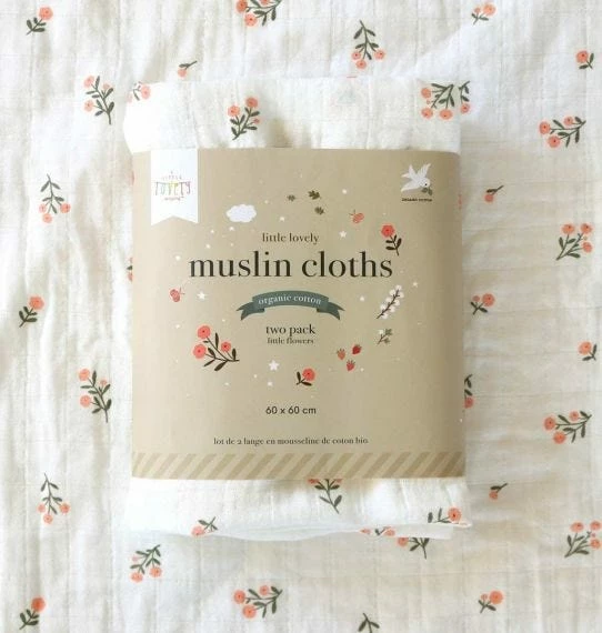 Set of two multi-purpose muslin cloths. Made from 100% organic cotton, these soft cloths are a must-have item for every new parent. Cotton muslin is lightweight, absorbent, and breathable, making it ideal to use as during feeding, cleaning, and bathing. These clothes are also the perfect size for on the go.
