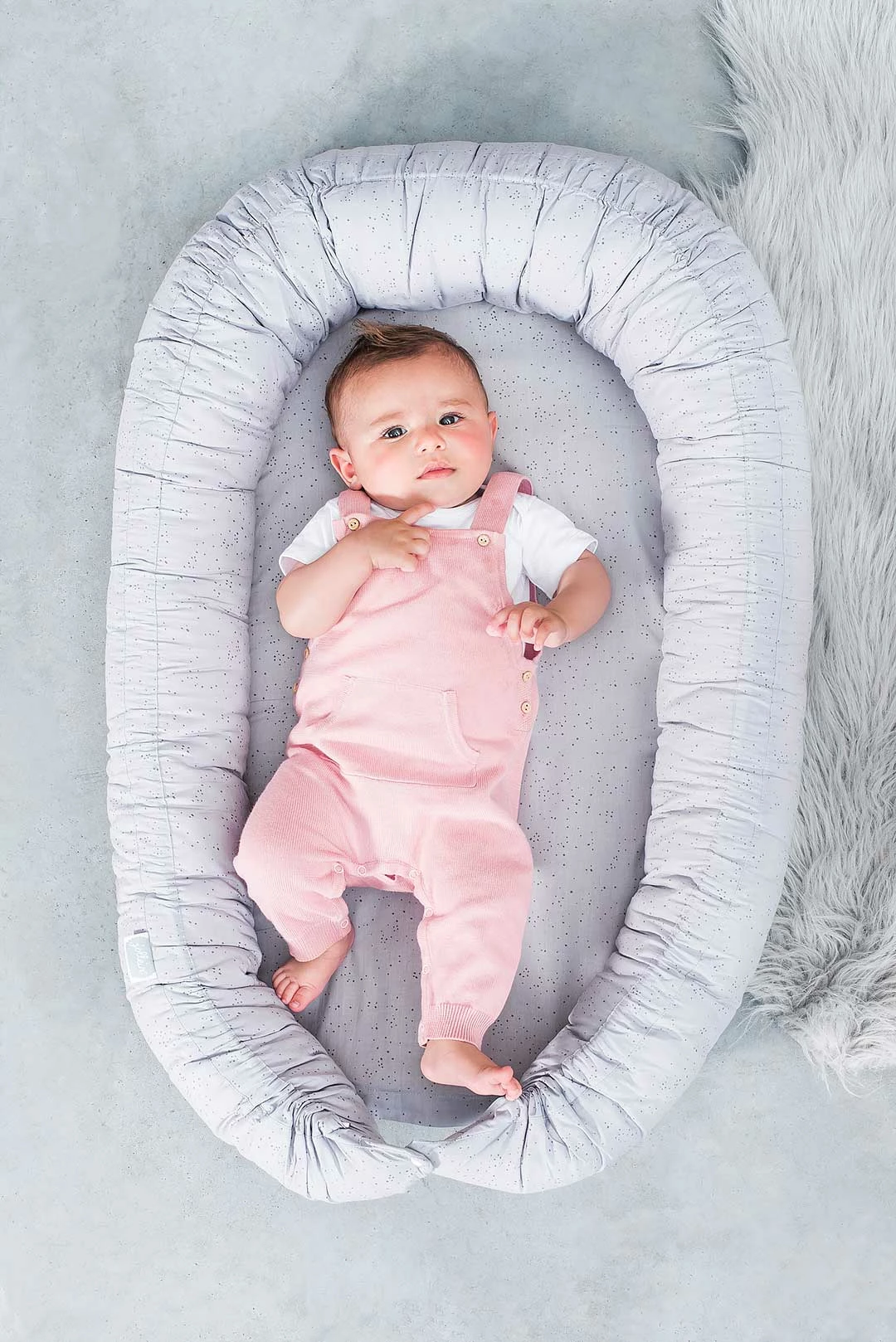 Nice baby nest with dots from Jollein. The cute baby nest comes from the Mini dots collection and is available in the colors gray, green and pink. The size of the litter is 40×70 cm and on the outside, it is made of 100% cotton and the mattress is made of polyester.