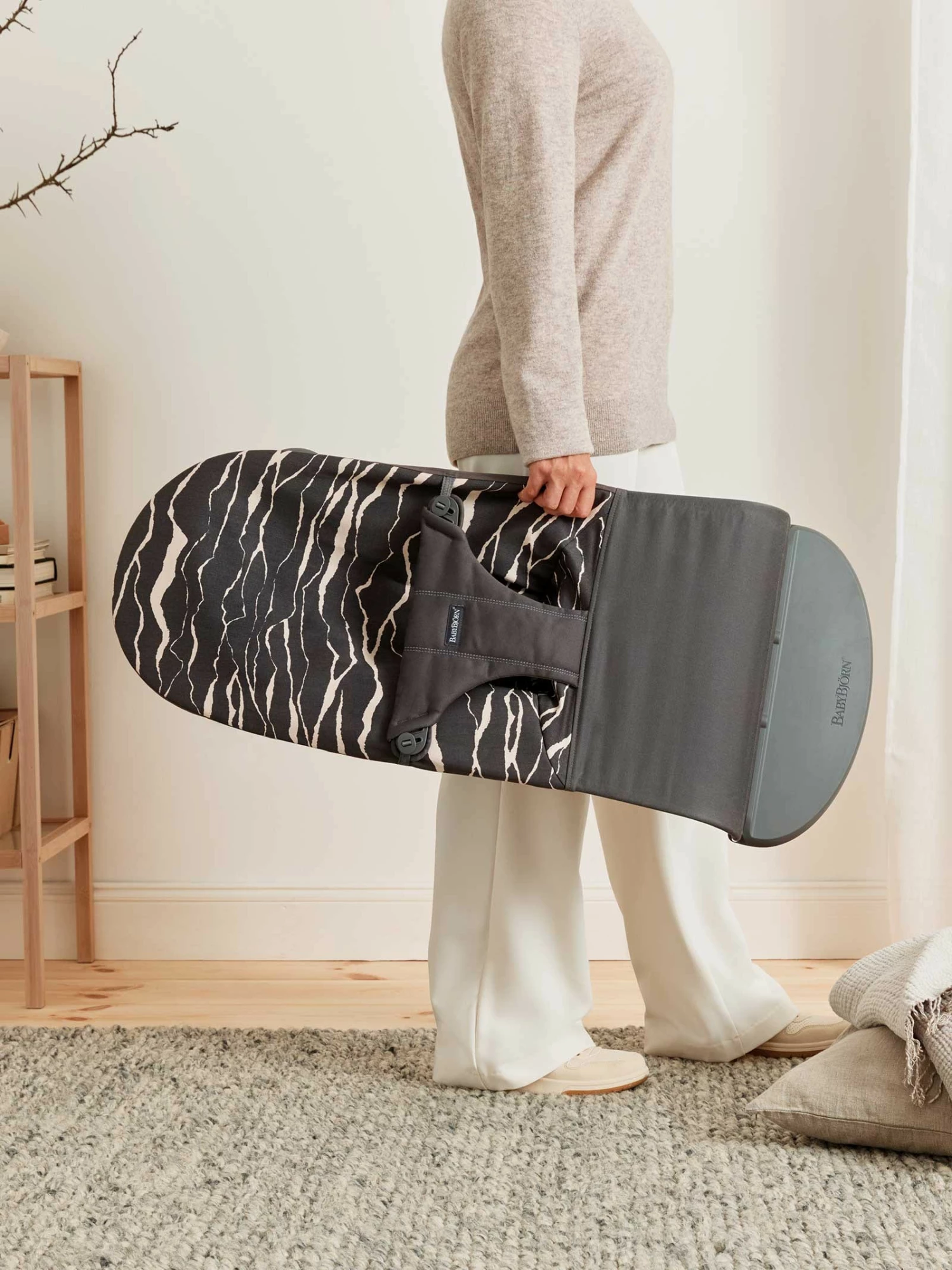 Foldable. The baby bouncer can be easily folded away and takes up very little space.