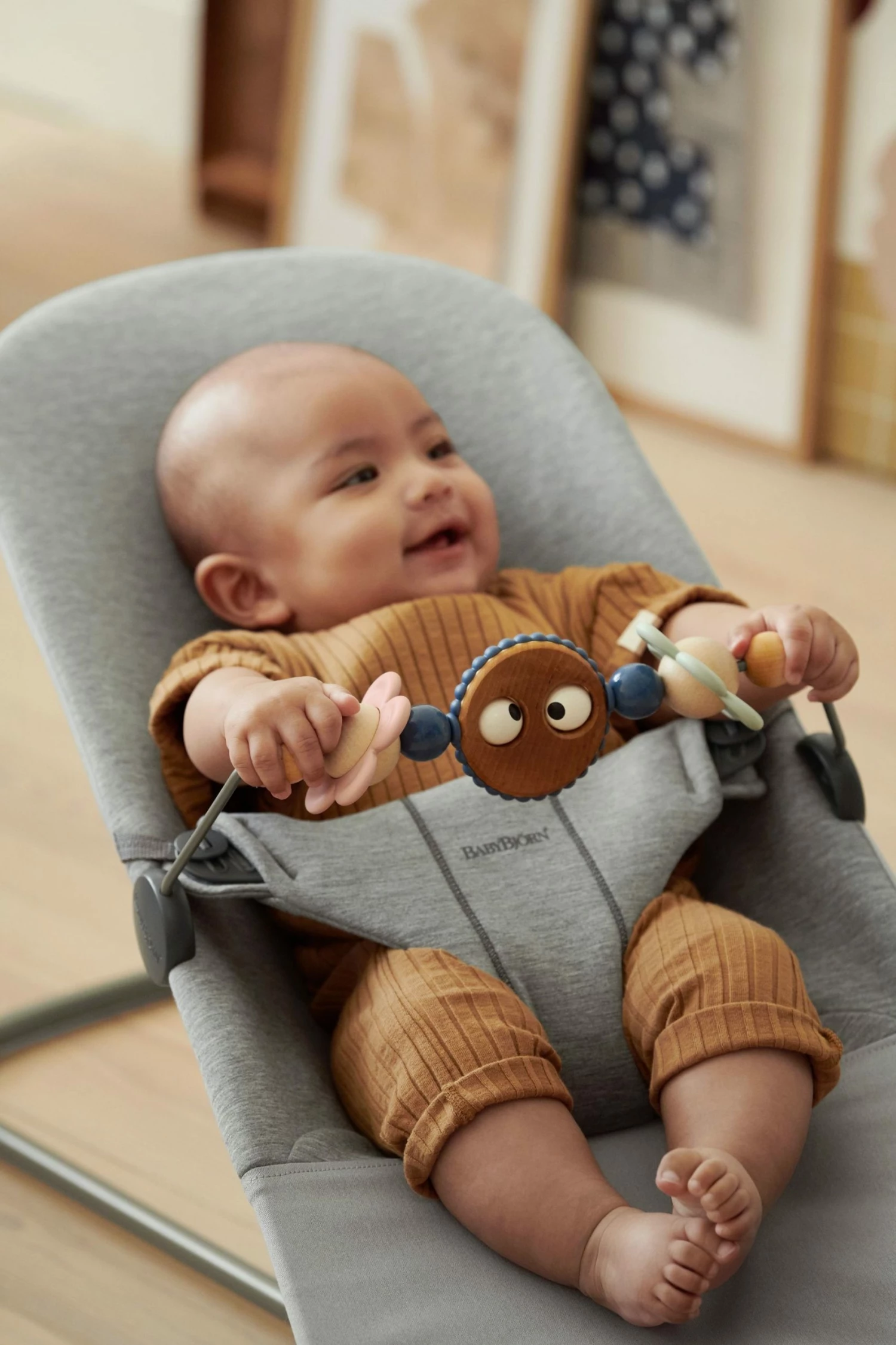 A cute and fun toy that your baby will love! Its brightly coloured shapes are fascinating for your baby to look at and play with. The toy bar’s features are easy to spin around, and the funny eyes make your baby smile and laugh. Playing also helps your baby to discover their physical capabilities and develop their motor skills.