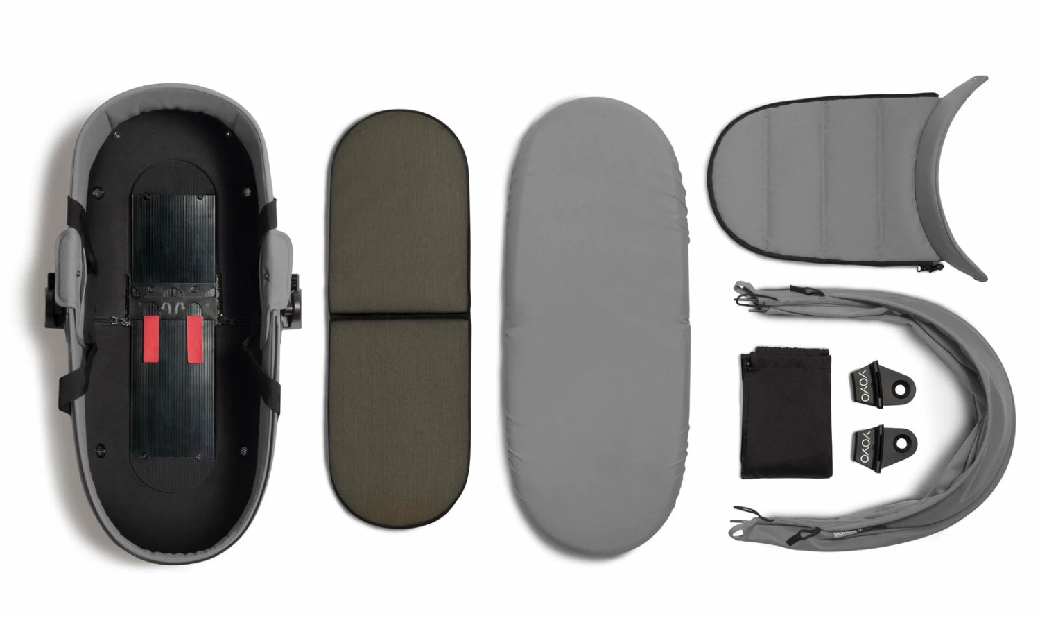 Thanks to its incredible lightness, you can carry it easily and clip it onto the stroller frame without waking up your baby when you head out for a walk. Whether it’s dinner at a friends’ or a visit to your parents’, all you need to do is unclip the bassinet from the frame and set it down to keep an eye on your baby. The YOYO² frame can be folded and carried over your shoulder while you carry the bassinet when walking back home. It’s the ideal way of transitioning between the outside world and your home.
