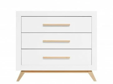 Dresser of the Fenna series has three spacious drawers. Due to the combination of white and clear lacquered wooden accents, this dresser has a modern contemporary look.