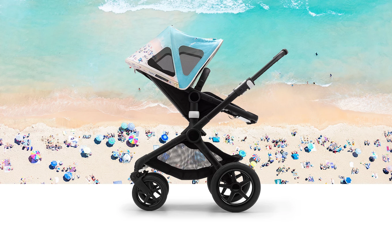Enhance your stroller with the Bugaboo by Gray Malin breezy sun canopy—a must-have summer accessory. The colorful summer print combines the spirit of travel, adventure, and art.