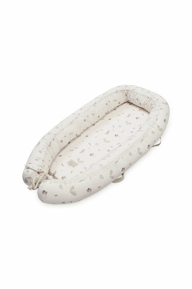 Cozy and soft baby nest made in organic cotton that gives your baby extra comfort – it is perfect in the transition from sleeping in the mother’s womb to own crib. The baby nest has a soft foam mattress surrounded by a soft edge with a drawstring making the size adjustable, following the growth of your baby.