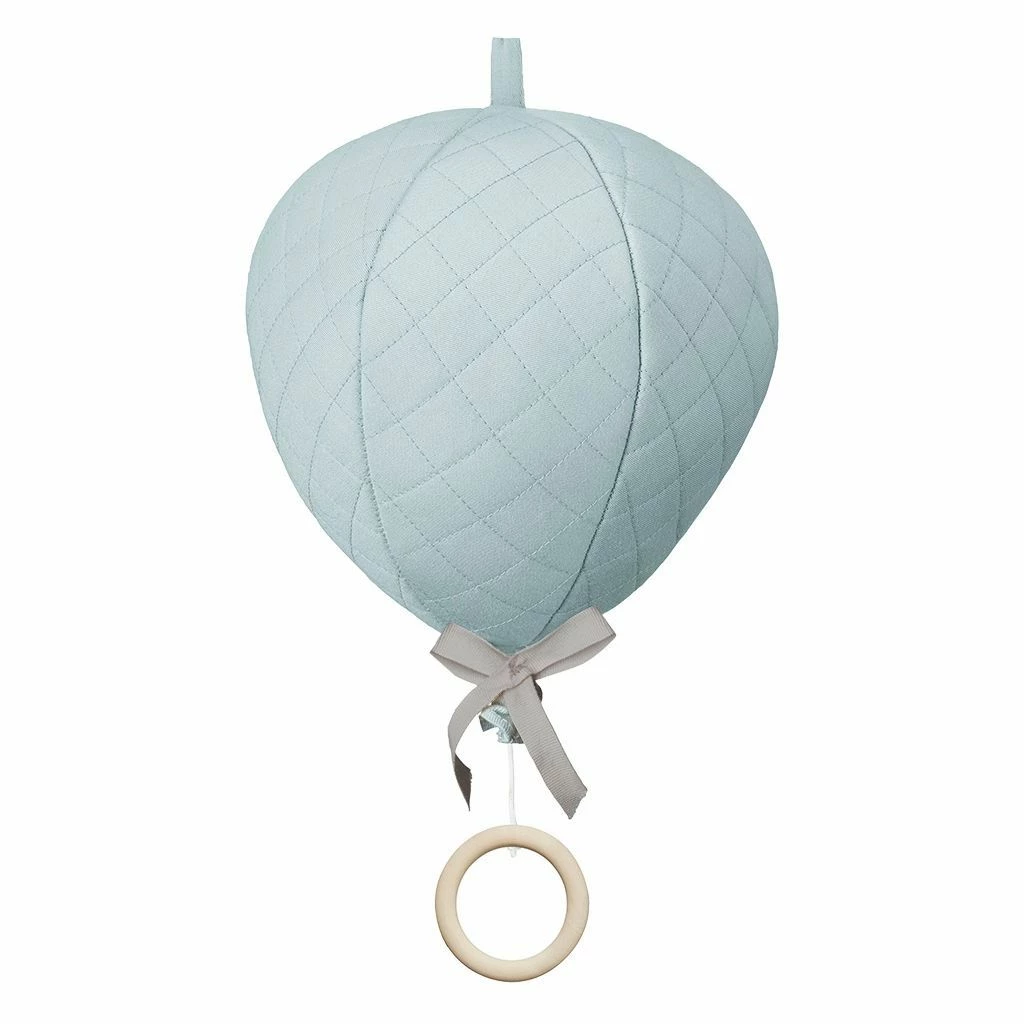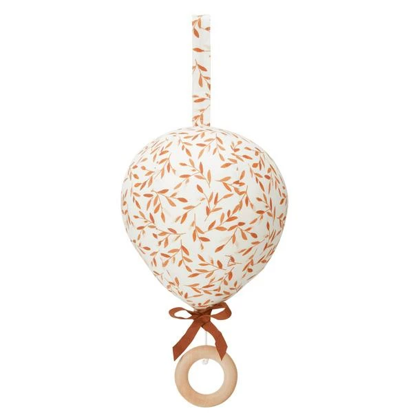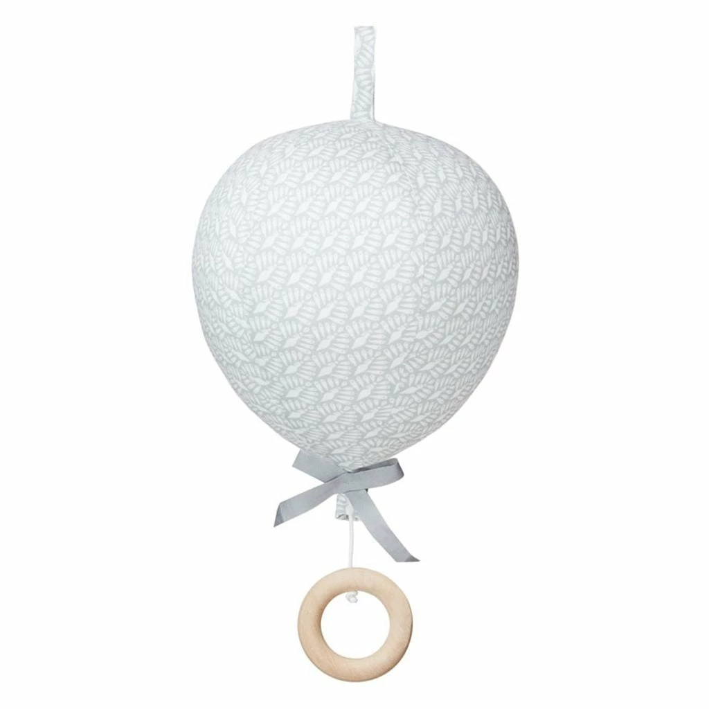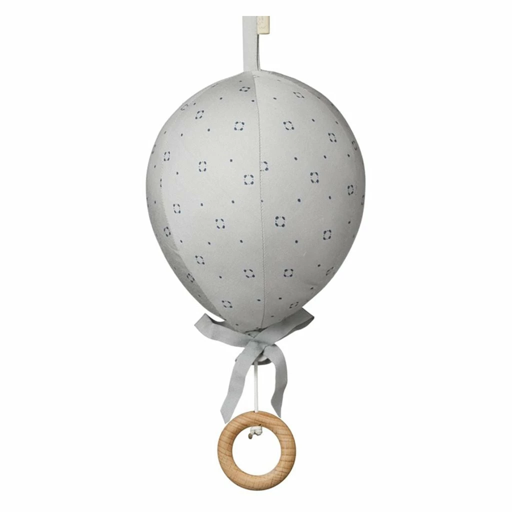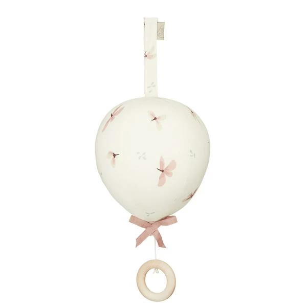 The mobile is shaped as a balloon with a little bow in cotton tape. Pull the wooden ring, and the music starts.