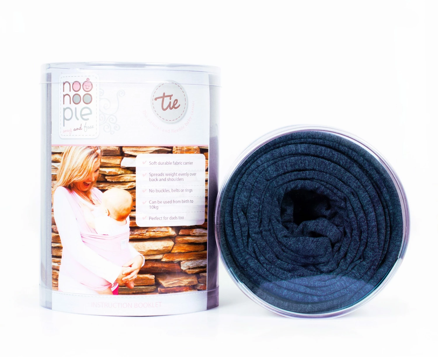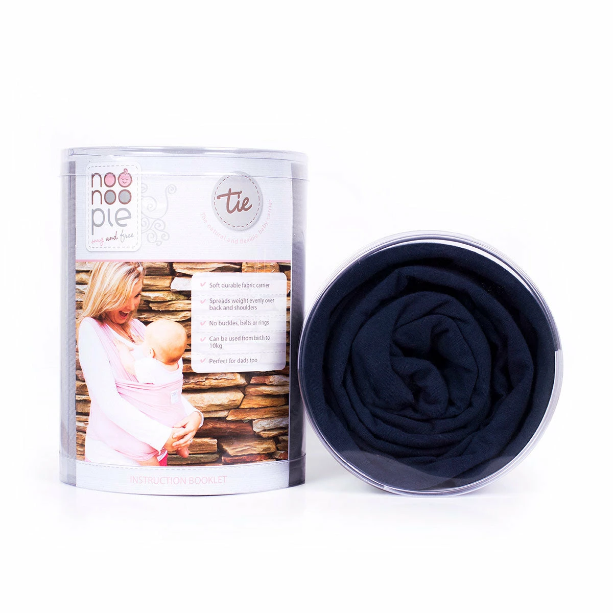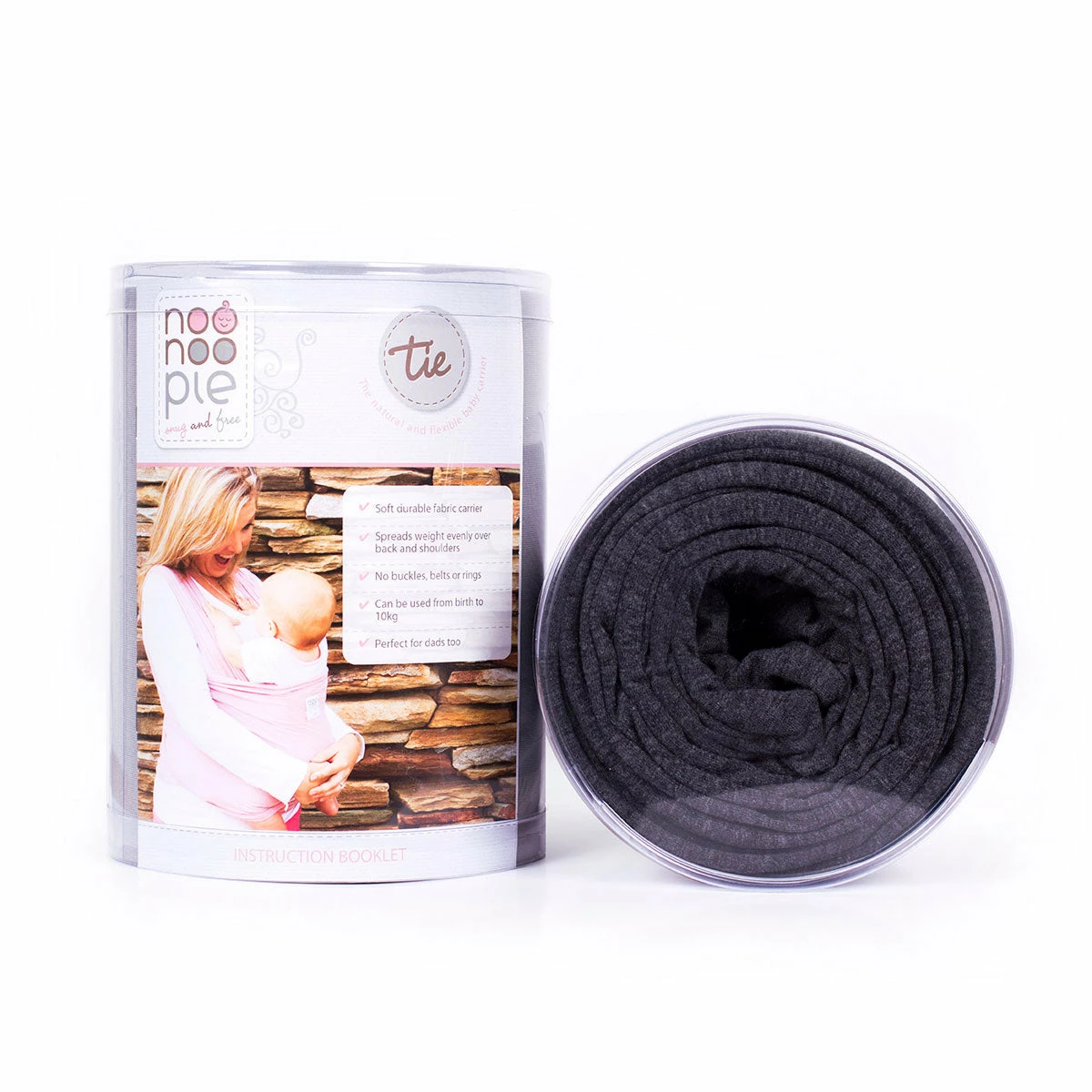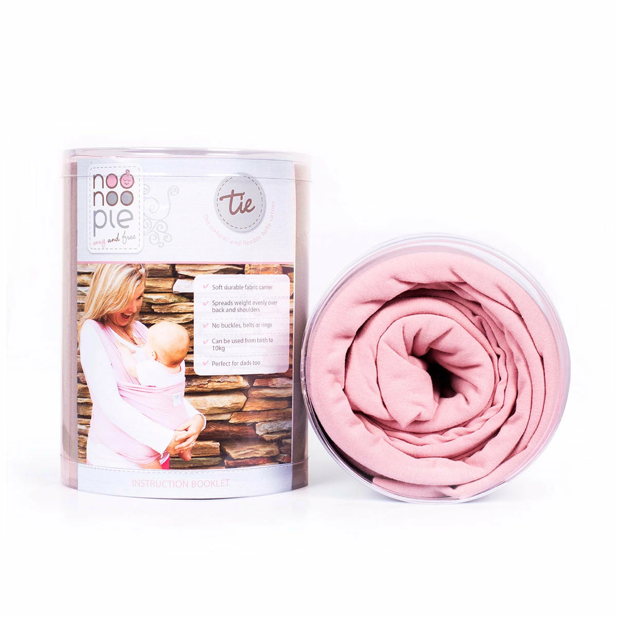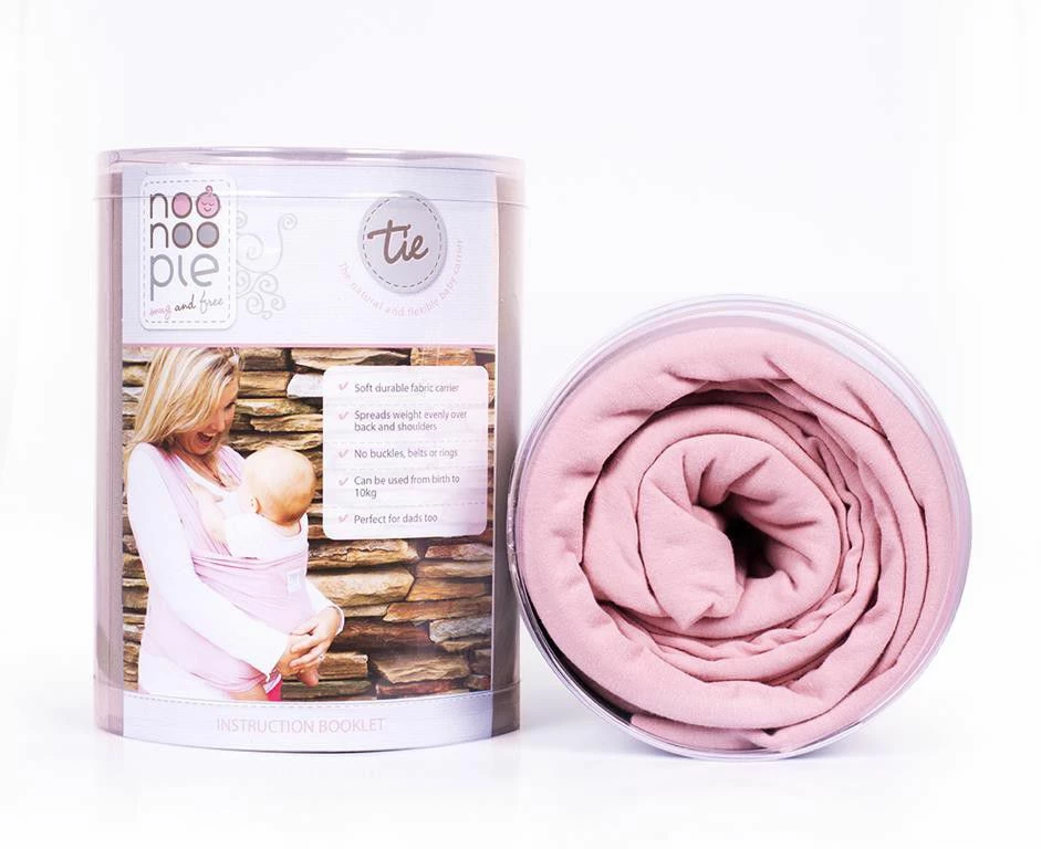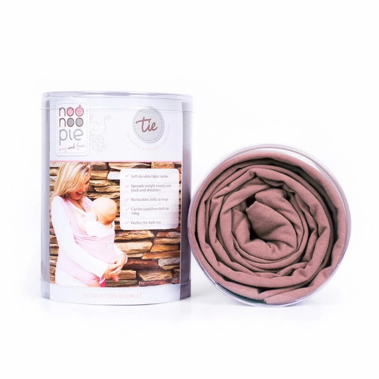 The Noonoo Pie Tie is a stretch wrap carrier which you simply wrap around you following the easy instructions provided and your baby fits in snuggly and safely.