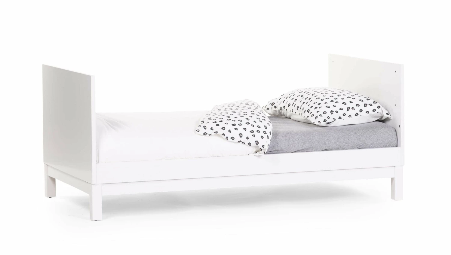 The Jota cot bed is supplied with slatted frame, adjustable in 3 different heights: 27 cm – 36 cm – 51 cm. Use the highest position of the slatted frame when your baby is just born, so you can easily take the baby out of bed. When your baby grows and starts to pull up, you can deepen the position. Set the slatted frame to the lowest position if your baby can sit up independently. You can also remove the side bars to transform the baby bed into a toddler bed. This way the bed will last even longer!