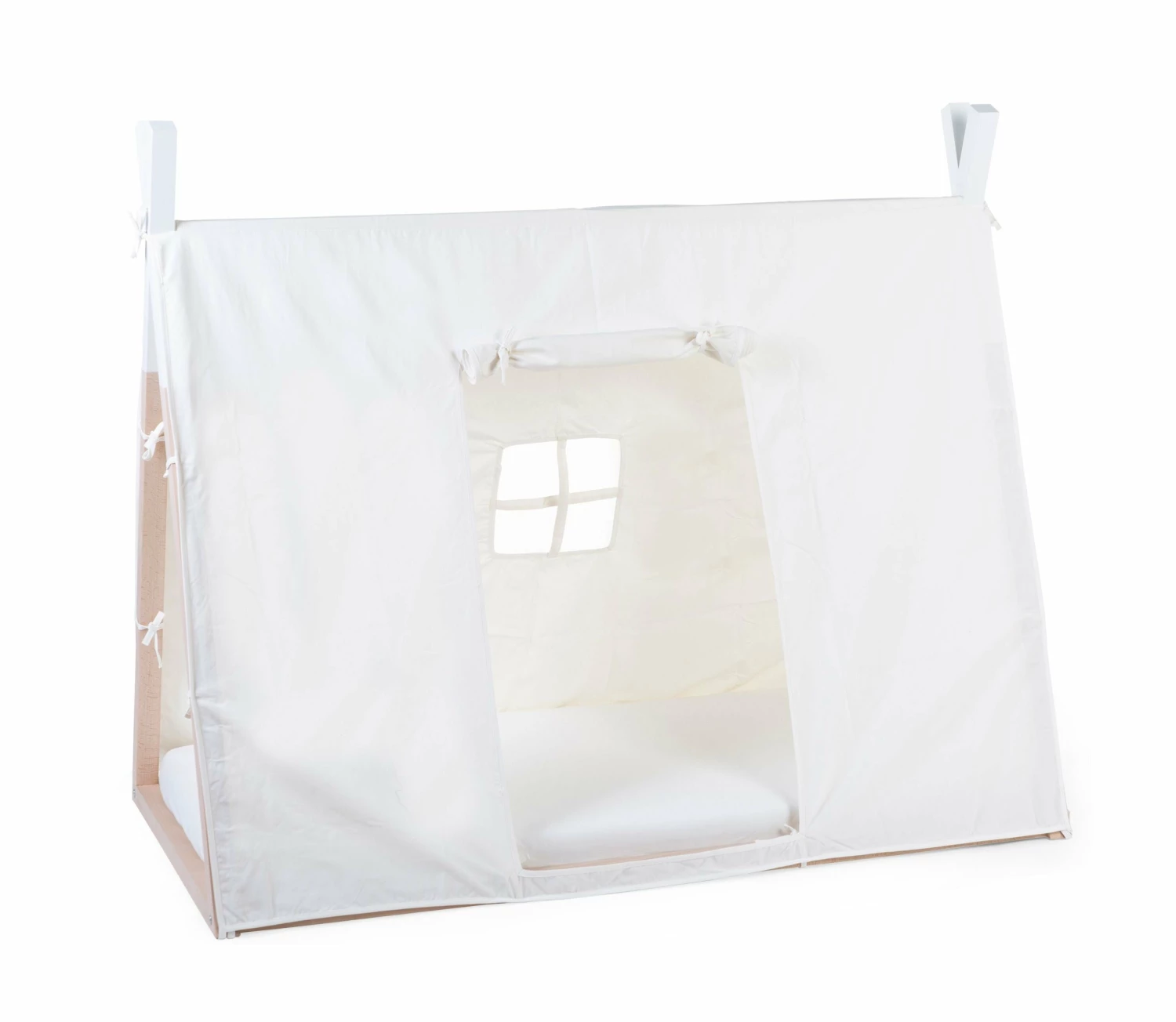 Transform your Childhome tipi bed into a super cosy wigwam with the tipi bed cover in white. Bedtime has never been so much fun! Your little one will experience all kinds of adventures in the hip teepee tent, while playing or in his dreams. With a cool adventurous tent, the children’s room is undoubtedly the eye-catcher of the entire house! This tipi cover is suitable for the tipi bed frame 70 x 140.