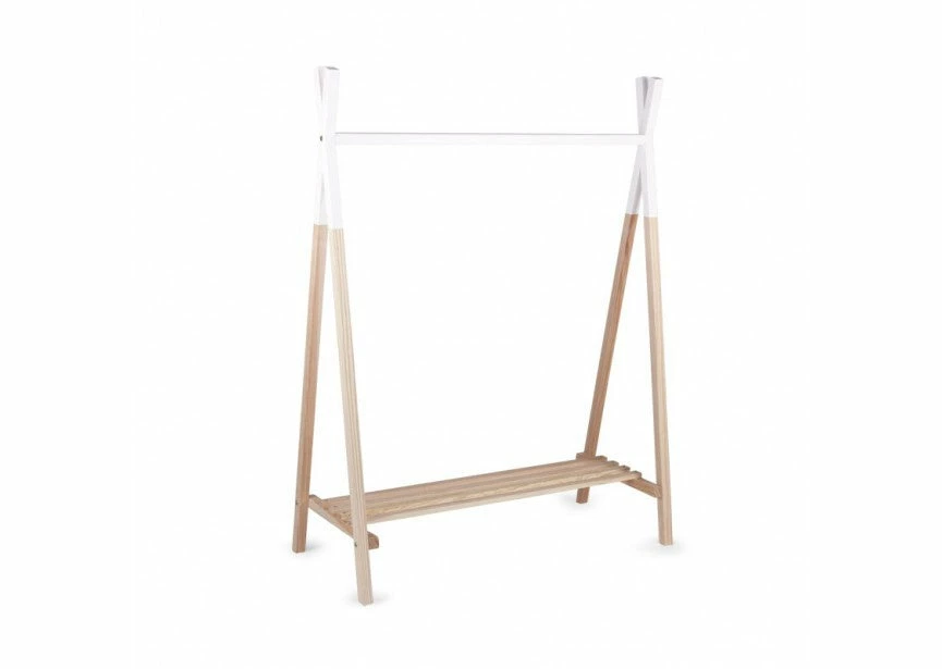 This open wardrobe in fun tipi style is ideal for little adventurers. The clothstand has a shelf at the bottom and at the top of a hang bar so you can hang up the clothes your child.