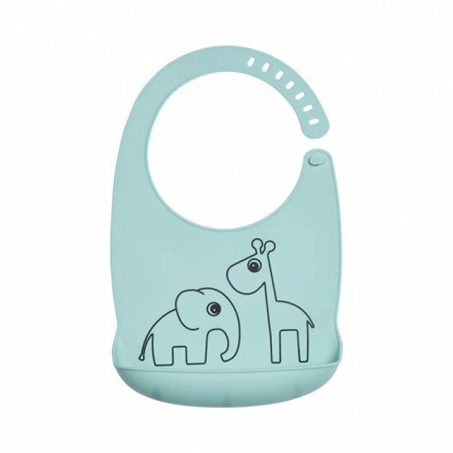 The silicone bib is easy to wipe clean or wash in the dishwasher.