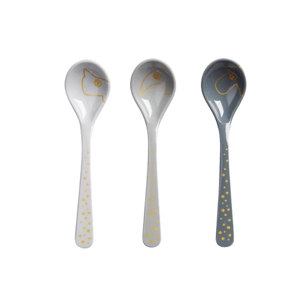 Raffi, Elphee and Ozzo will help you introduce your baby to solids. The long handle will get you to the bottom of any meal. A perfect baby spoon set for first bites.