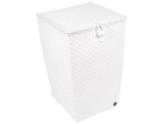 Handed By Laundry Basket VENICE. This sturdy laundry basket is made of strong plastic and has a lid that can be closed with a plastic knob. It has a reinforcing metal frame at the top. Height: 52 cm, width: 33 cm, depth: 33 cm. Material: plastic. Due to production, there may be slight color deviations. You can choose from more than 15 colours.