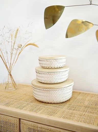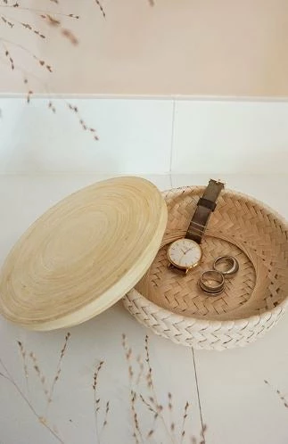 Made in Asia – at Handed By, this distinction takes on a new meaning and stands for sustainability, fair wages and high-quality craftsmanship. Because the weaving of cords has a long tradition between Halong Bay and the banks of the Mekong River. Under the hands of experienced craftsmen, the basket WONDER is created here, which is a real space miracle. From pens to make-up utensils, from keys to cosmetics, everything finds a place here. Thanks to the lid made of bamboo wood, the storage basket can also be closed.