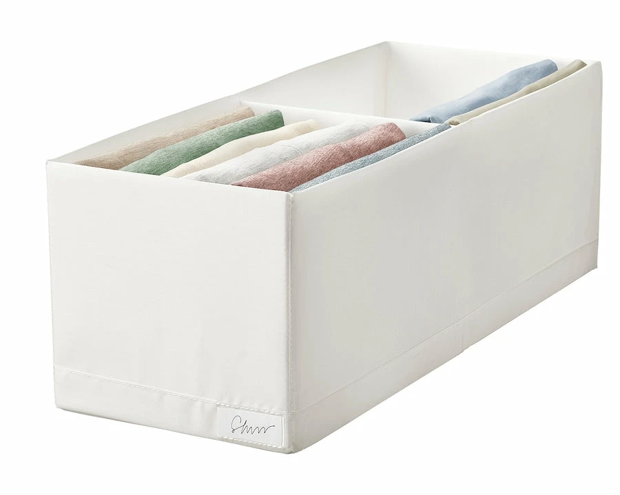 Have one box for socks, another for training gear or folded sweaters. These boxes divide your storage and make good use of space. Use with other STUK products for complete control of your storage spaces.