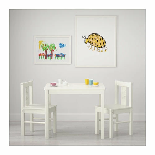 The solid poplar table can be used at dinner time, or for play and drawing.