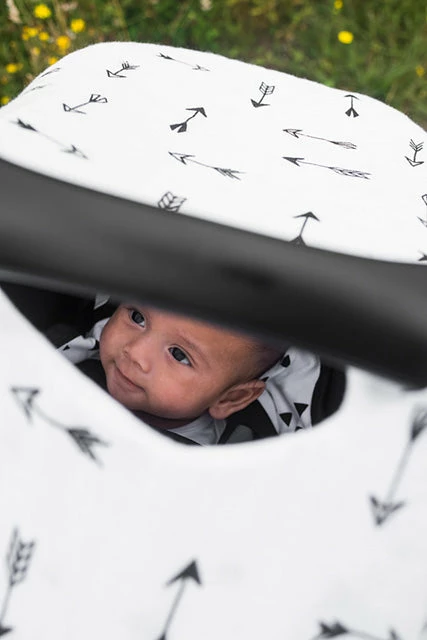 This great quality carseat canopy can be used on any infant carseat and is made of 100% cotton.