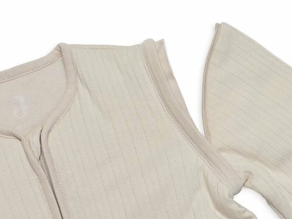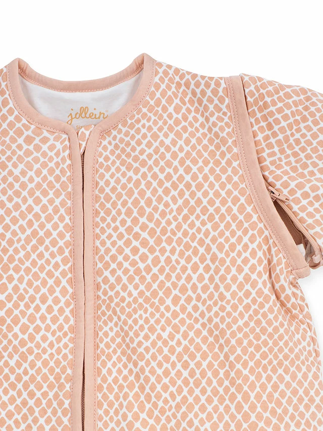 Beautiful sleeping bag with detachable sleeves from Jollein. The baby sleeping bag has detachable sleeves and a TOG value of 2.0. The sleeping bag is available in green and pink in the sizes 70 cm, 90 cm and 110 cm. The sleeping bag is made of cotton and lined with polyester fiberfill.