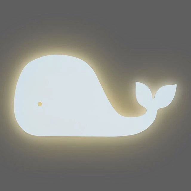 Beautiful, wooden wall lamp from Jollein. The lamp, in the shape of a whale, is made of MDF and is gray. The lamp is 38 cm wide and 19 cm high. Also available as a shell in pink and nougat. The lamp is not included, it fits an E14 bulb of 40 Watt. A cord and switch are attached to the lamp.