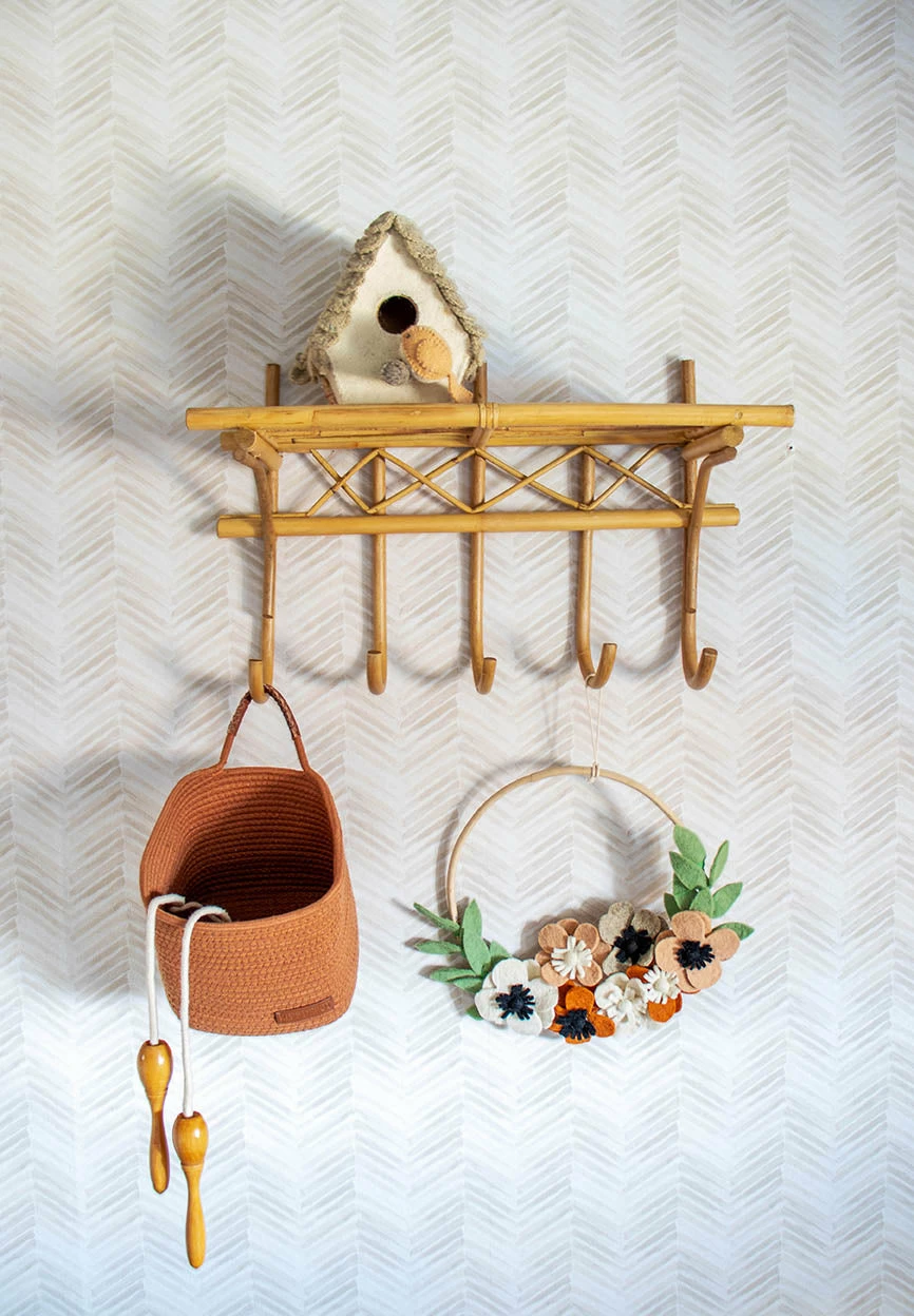 Kidsdepot Alec coat rack is made of rattan. Because this item is made of natural materials it fits in many interior styles. Beautiful in a baby room, but also suitable for a teenager’s room.