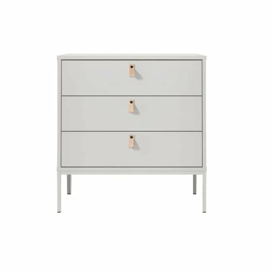 The Kidsmill Amy chest small has a playful look because of the high, metal legs and the leather handles. Perfect for a nursery! The chest is compact and only 85cm wide. Very convenient for a smaller nursery.