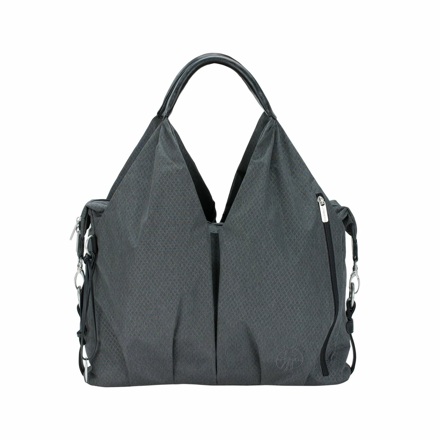 Like the other models, this sustainable companion during the diaper-changing years naturally features a well-organized inner compartment with plenty of space to store baby utensils as well as personal items. The bag comes with an extensive array of accessories, including a water-repellent changing mat, an insulated, removable bottle holder, a pocket for utensils, removable baby food jar compartment, stroller attachment and an additional adjustable shoulder strap. There’s even a place for your cell phone in the integrated cell phone compartment in the outer pocket. You can attach keys directly to the key finder and stow baby wipes in their intended compartment inside the bag. The bag also features a water-repellent wet pocket and an insulated external zip pocket to keep drinks warm or cold. The perfect accessory for an exciting walk around town with your child and friend – even after a diaper change.