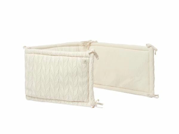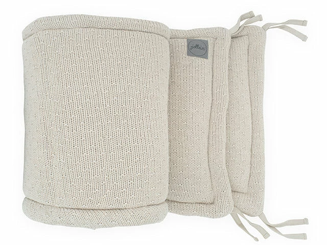 Do you also have a little one who is very busy in his sleep? With this bed bumper, hitting the hard bars is a thing of the past. The padded bumper is nice and soft and easy to attach to the bed or playpen. It is also very cozy and gives a feeling of security. You can use the box bed bumper on two sides. A soft fleece side, or a nice knitted side. The bumper matches very well with, for example, the blanket or the playpen rug from the River Knit theme.