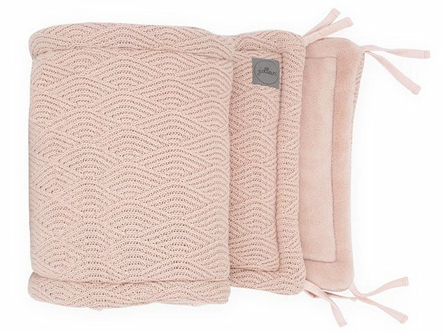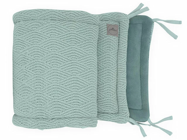 Beautiful, knitted bed bumper from Jollein. The bed bumper comes from the River Knit theme and is available in white, green and pink. The dimensions of the bed bumper are 180×35 cm and it is made of 50% cotton with 50% acrylic, the back is made of soft fleece (polyester) and lined with fiber fill. The strings to attach the bed bumper to the playpen or bed are 21 cm long.