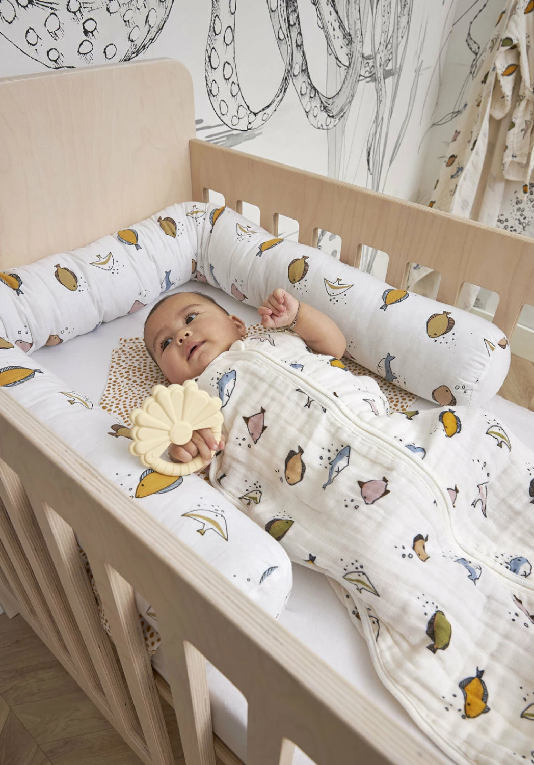 The Meyco Bumper made of cotton are multifunctional and suitable for every nursery. The Bumper can be used as a pregnancy pillow, nursing pillow, reducer in the crib or stroller, bed bumper, playpen bumper and as a demarcation of sleeping or play area. Available in various trendy prints and can therefore be perfectly combined with the complete Meyco collection.