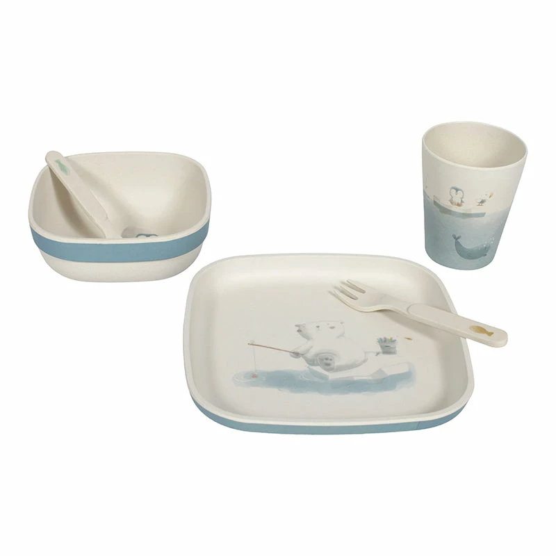 Sitting at the table is a party if you can use this cute tableware. The set consists of a plate, bowl, cup, a fork and a spoon.