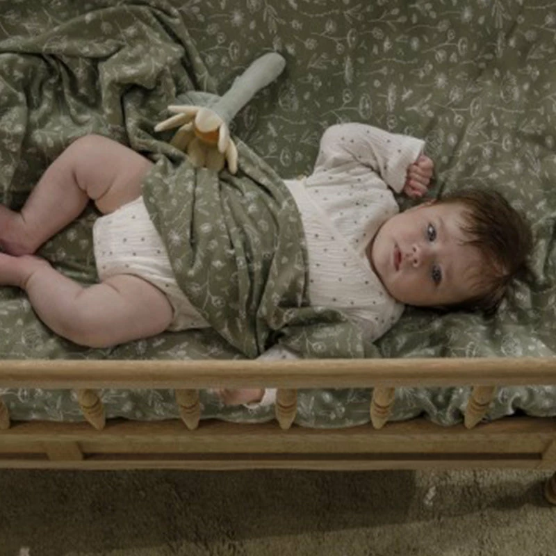 How cute is this flower rattle! When you play with it you will hear a pleasant sound. A crunch is hidden in the petals of the flower for extra fun. The rattle stimulates hand-eye coordination, is made of wonderfully soft material and can easily be grasped by small children’s hands.