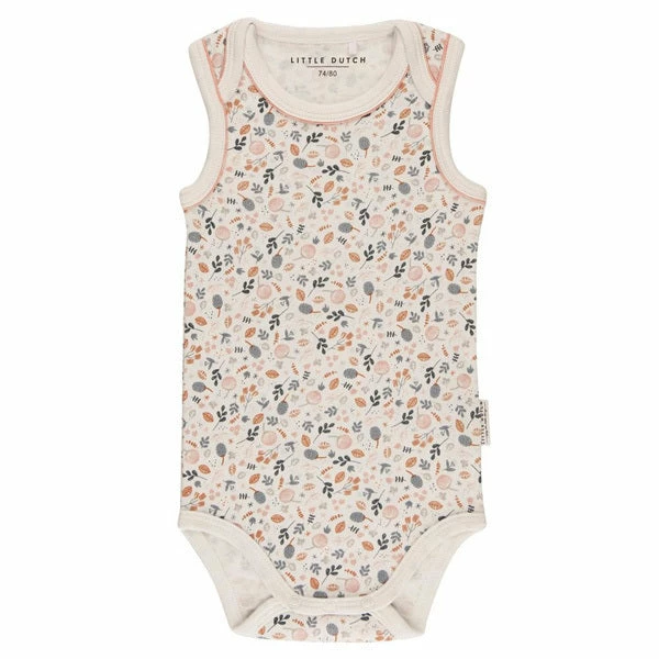 The beautiful Little Dutch bodysuits, made of high-quality cotton, are available in three varieties: long sleeves, short sleeves, and sleeveless. This indispensable garment for babies comes in various colors and prints and has a snap button closure at the bottom. To prevent skin irritation, no brand labels are stitched into the neck opening.