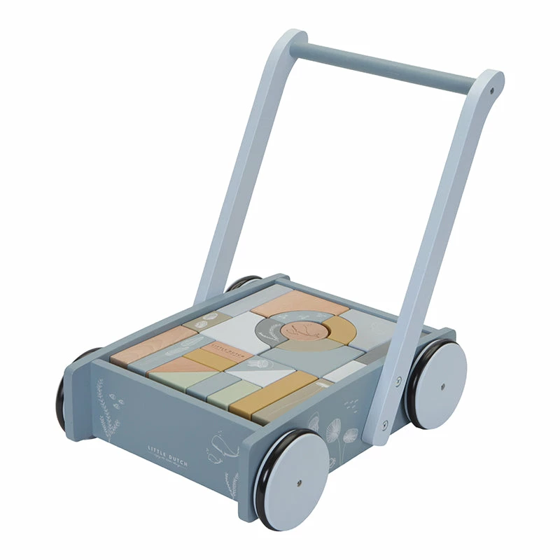 The handle is at the right height for toddlers so that they can comfortably walk around the room. This cheerful cart full of blocks guarantees hours of building fun.
