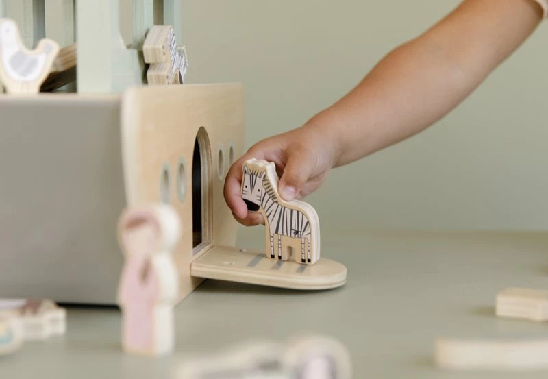 Everyone aboard! Play the story of Noah’s Ark with this beautiful playset. Help the animals find each other and get ready for their journey. Each passenger has a matching friend to travel with.