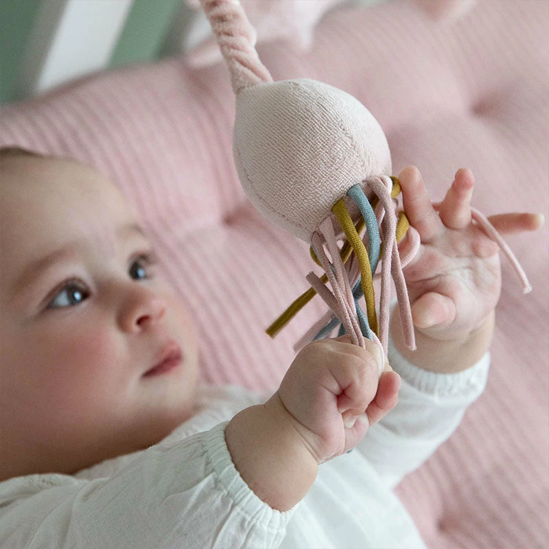 The spiral can be easily attached to the box or to the stroller bracket. This toy not only provides a lot of fun and entertainment, but also stimulates hand-eye coordination.