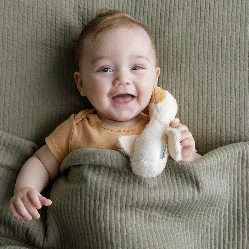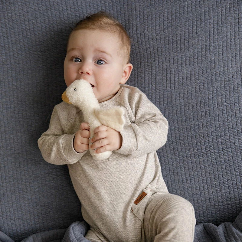Meet Gans and his friends. Recognize their shapes and unique sounds with this fun puzzle. If you put the animal back in the right place, you will hear it splashing, croaking or buzzing. Designed for your child to get to know the living creatures around the pond in the countryside. 2 x AAA batteries not included.