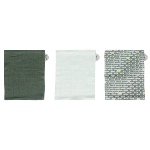 Milk, drool, remains of that juicy fruit it had… the mouth of your little one gets quite nasty on ehh.. well.. any day actually. With the LUMA Muslin Face Cloth you’re always prepared to wipe clean your little one’s cheeks. Convenient in everyday life! The bamboo fabric makes the cloth super soft and gentle for your child. It absorbs moisture quickly. The LUMA Muslin Face Cloth (3-pack) has the following characteristics: