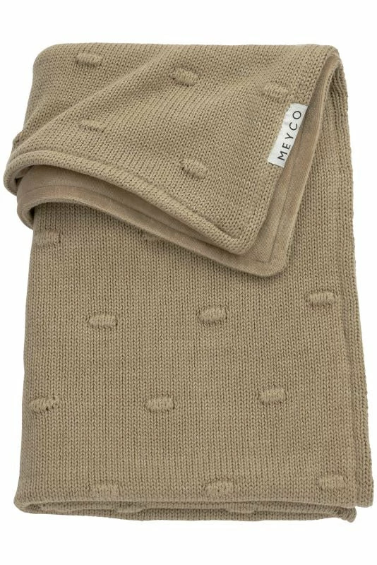 The Meyco knots baby blanket with velvet is a knitted baby blanket and wonderfully soft and comfortable. The blanket consists of two layers. The knitted front of 100% cotton has subtle 3D studs and gives a contemporary, but also luxurious look. The back is made of 80% cotton and 20% polyester velvet. Thanks to the double layer, the blanket keeps your child well at temperature in the spring / autumn and winter.