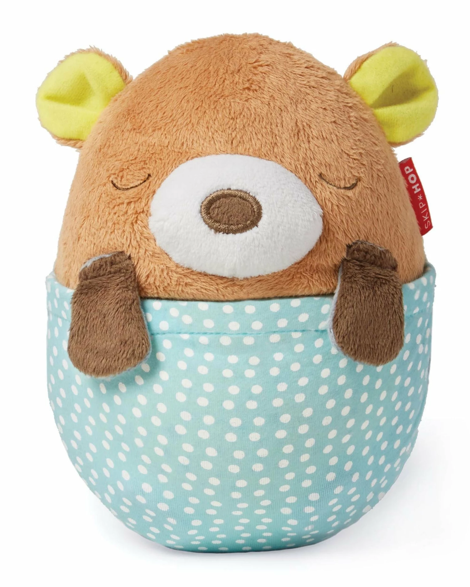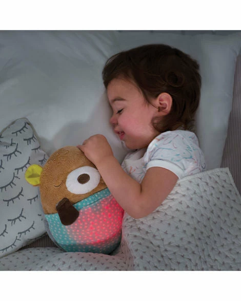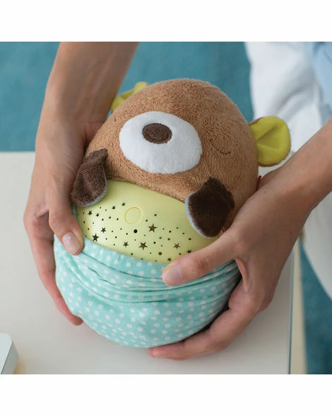 These battery-operated baby soothers projects a starry nightscape onto any surface, then transforms into a huggable bedtime friend for your toddler! Simply flip up the pocket to cover the projector belly and enjoy a warm nightlight glow. With four gentle melodies and an auto-off timer, baby will drift off to dreamland in no time.