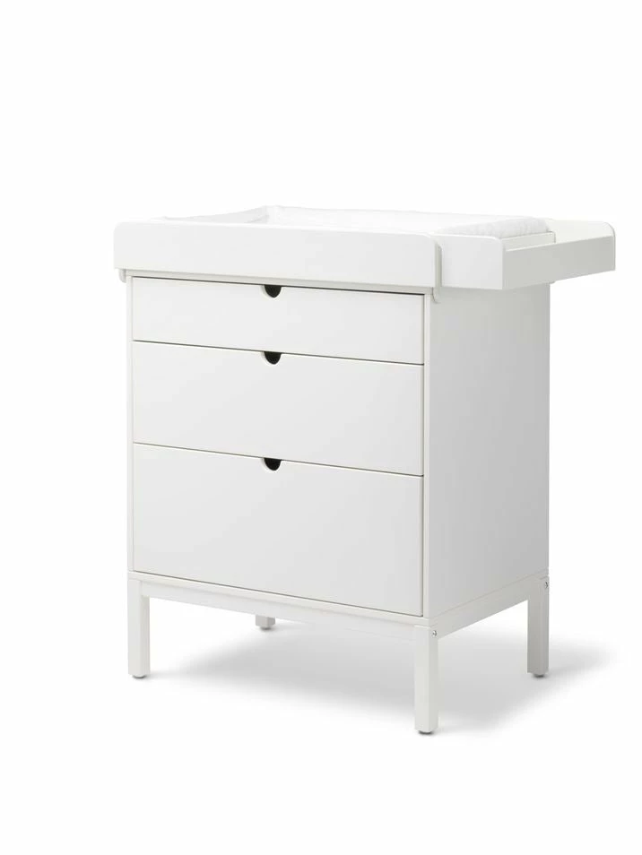 Storage space for their little clothes, toys and treasuresStokke® Home™ Dresser is the perfect height for changing your baby when the Changer is attached. The spacious, soft closing drawers offer plenty of room and give easy access without letting your baby out of sight. Depending on how you arrange your room, the Dresser with Changer allows for both sideways and parent facing changing positions. Open space for your feet under the Dresser let you get closer when changing and cuddling your baby. The Scandinavian design together with the durable material makes it a classic piece of furniture that will last for years.What’s included; Home dresser unit only.