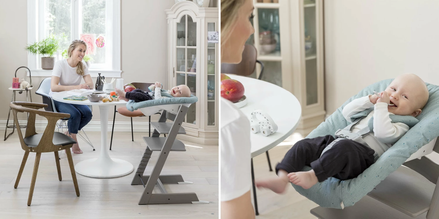The Tripp Trapp® Newborn Set is designed to encourage bonding from the very beginning. Comfortable and ergonomic, it cradles your newborn, lifting them to table height. Now with 2 angle adjustable positions and excellent leg support, your little one is assured a cozy, nest-like environment they are sure to enjoy. This enables eye contact, promoting interaction during meals and gatherings around the table.