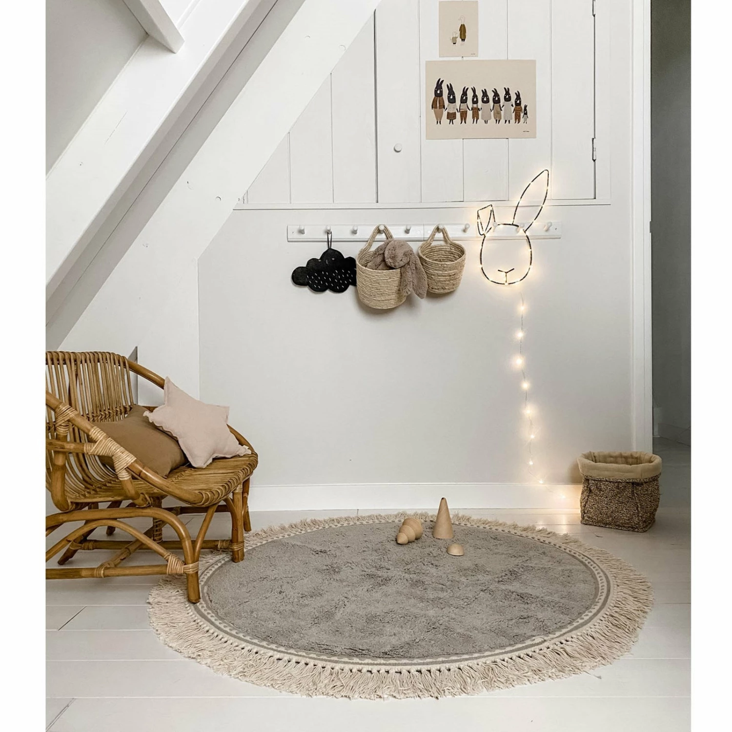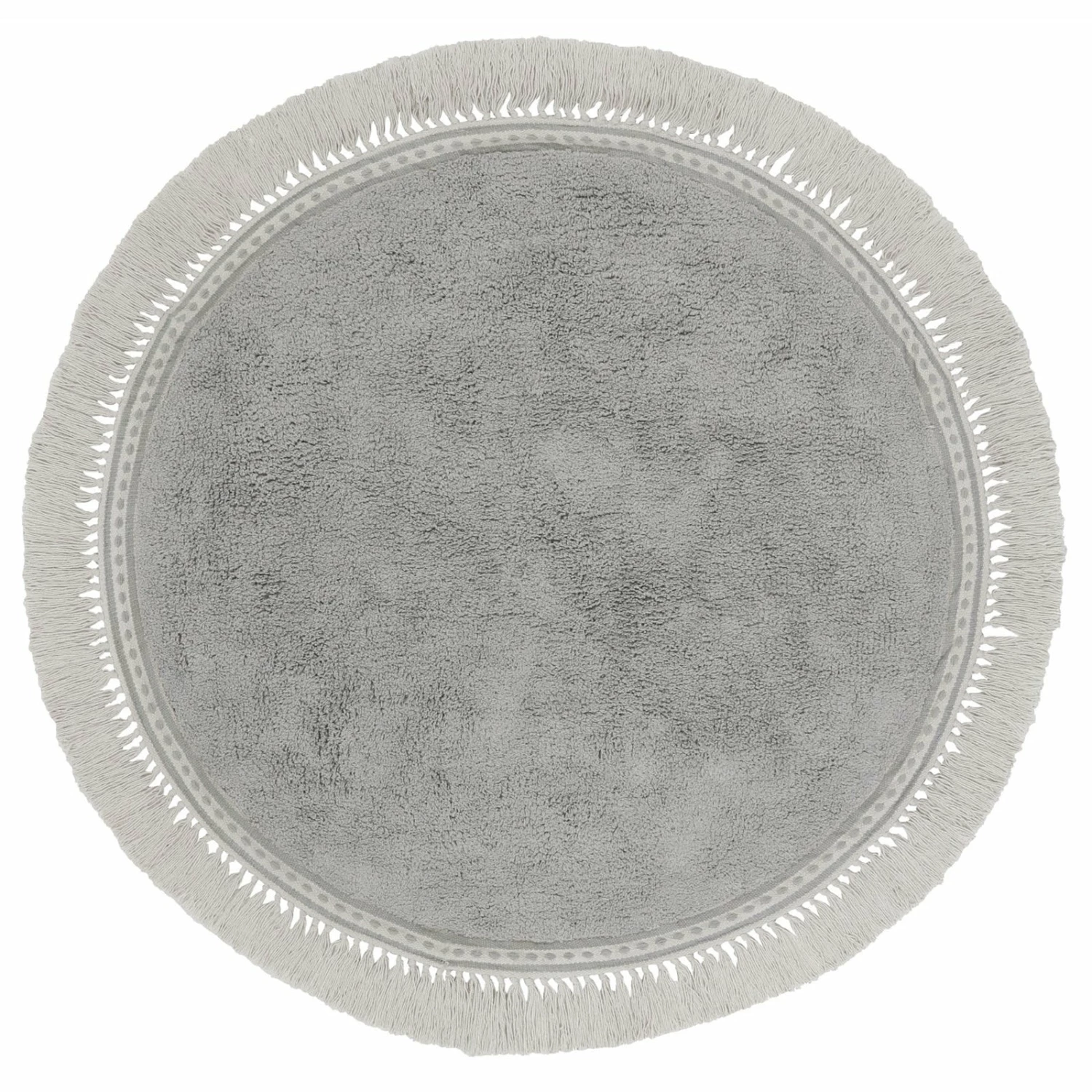 Gray Lily rug by Tapis Petit. The rug has fringes all-around.