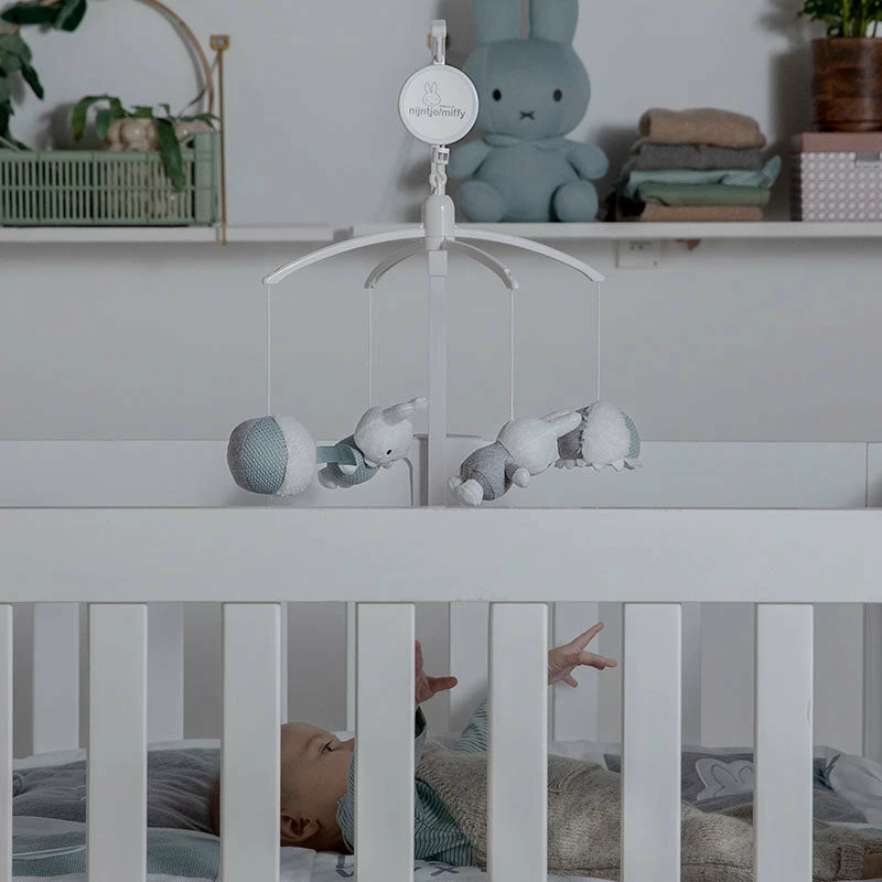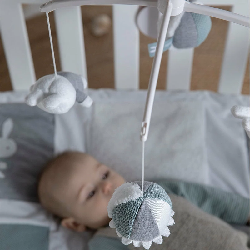 Nice mobile to attach to bed or play pen. Besides listening, this music mobile stimulates the coordination of your child. Easy to attach to bed or play pen. Melody: Für Elise.